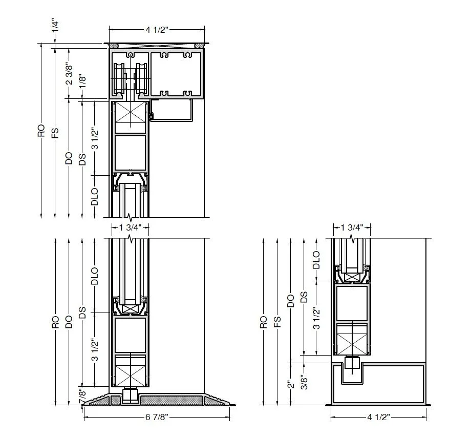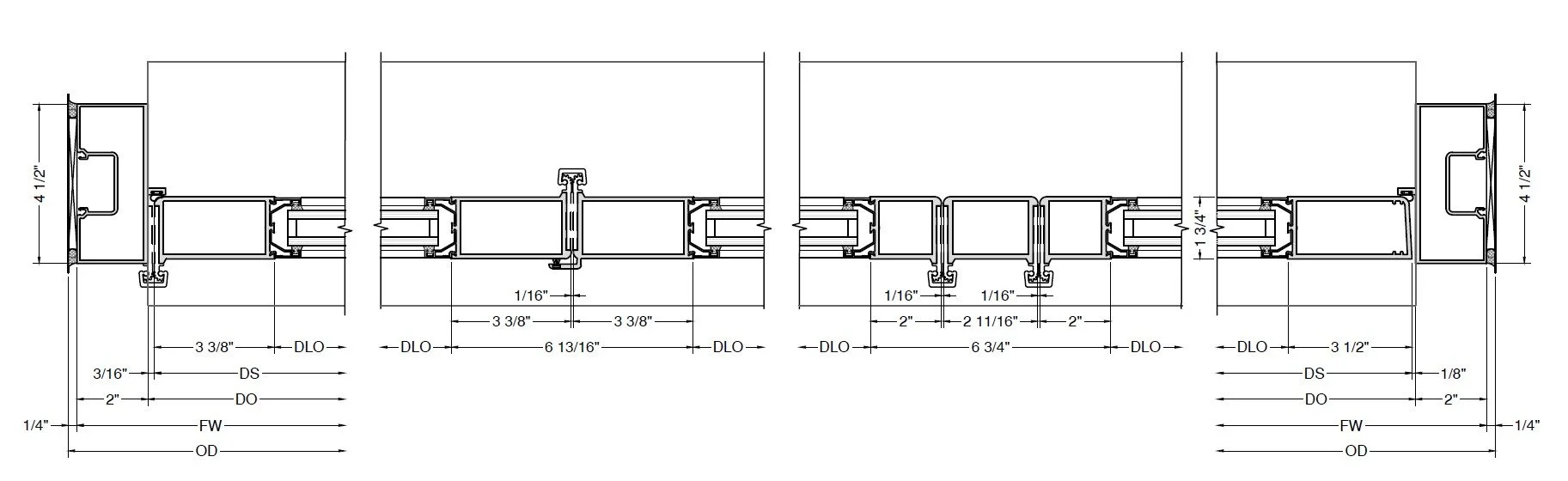 Vitralum Standard Bifold Doors are standard 1.75” depth, available with narrow (2.125”) or medium (3.5”) stile sizes, including a variety of intermediate and bottom rail options. Glass stops are compatible with 1/4”, 1/2” and 1” glass. Vitralum offers standard Class I anodized finishes in clear and black-bronze (extra dark bronze) and project specific custom paint, powder coat and anodizing are available per request.